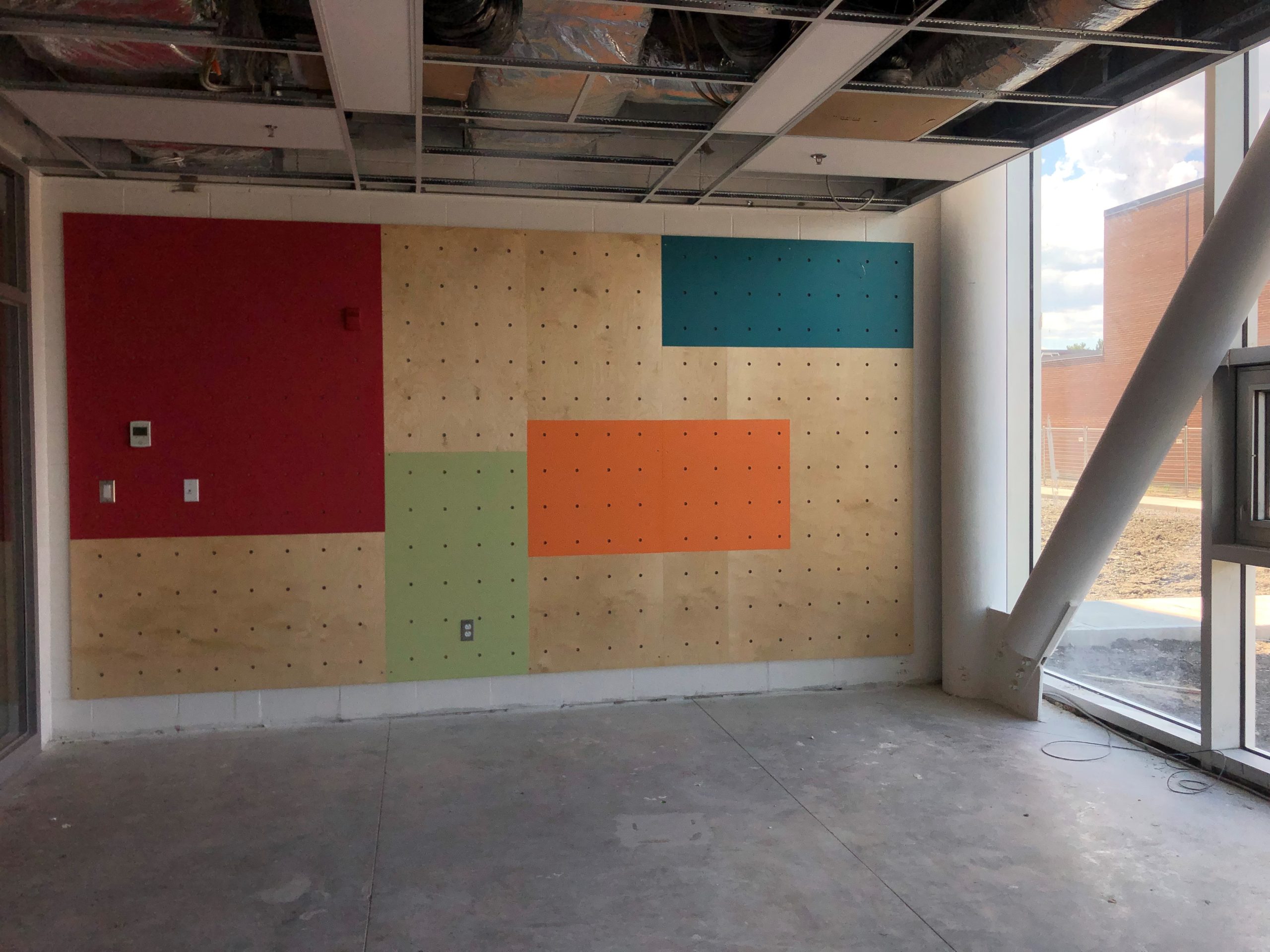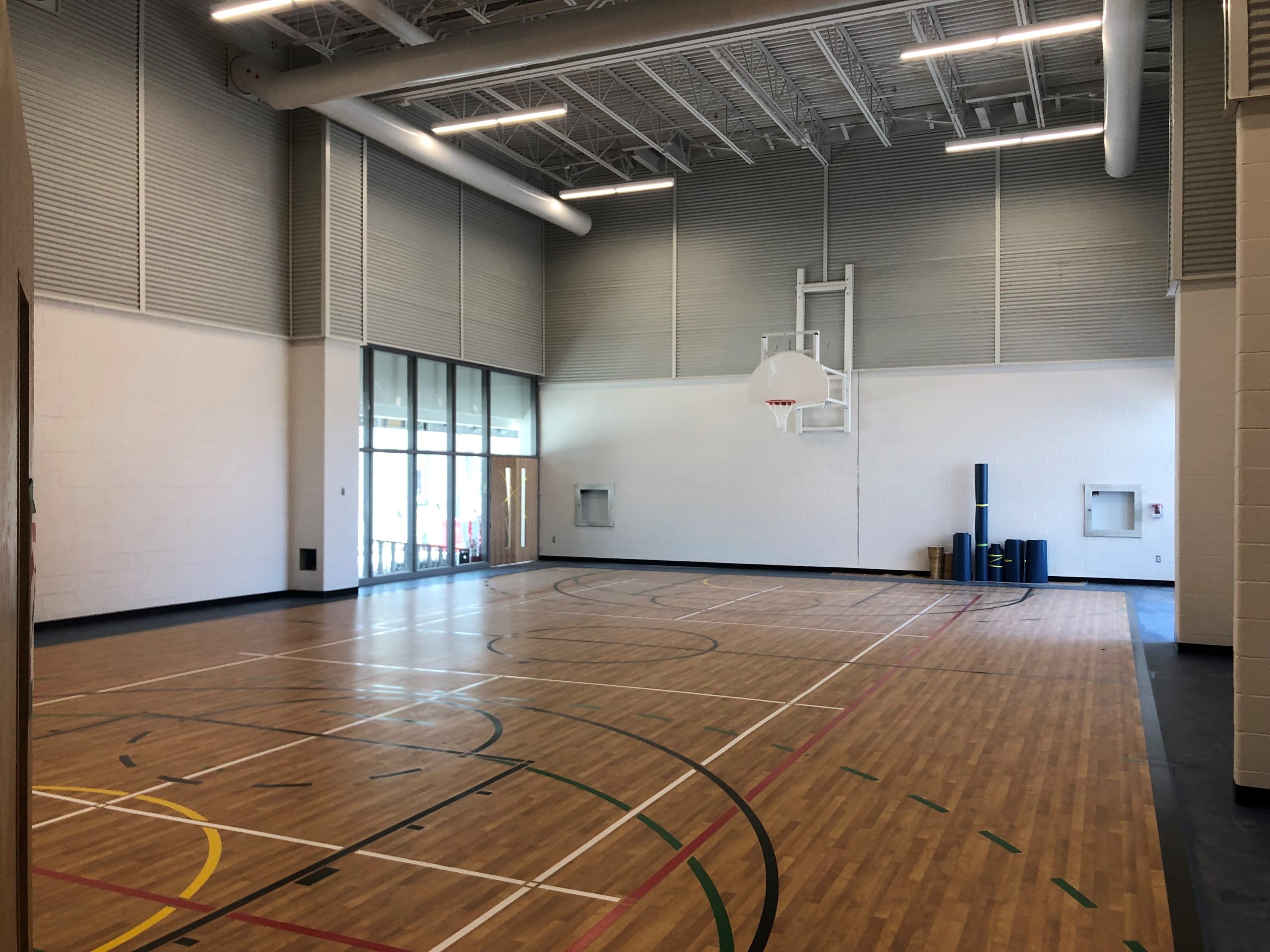 - Tests d’humidité de la dalle et installation du revêtement du plancher du gymnase.