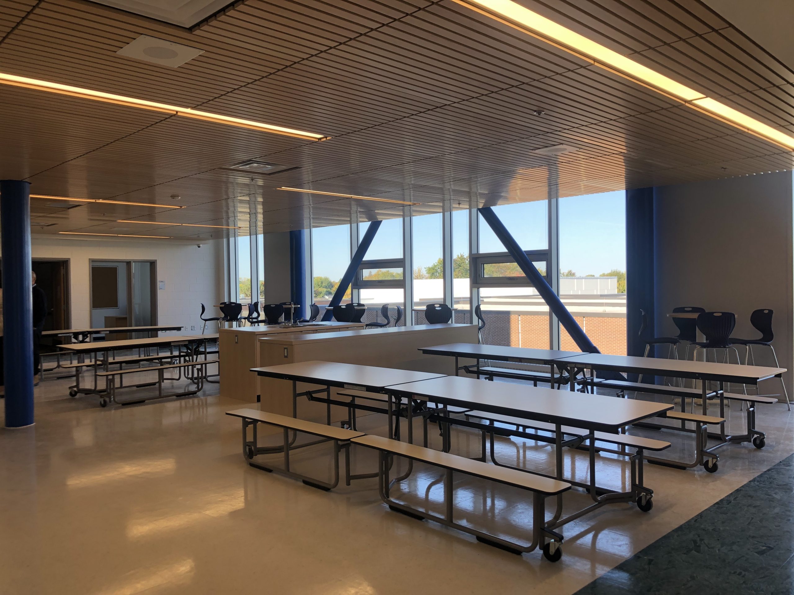 Depuis la rentrée, l’agrandissement du gymnase, incluant les espaces du bloc sportif (gymnase double, salle de musculation, classes et bureaux, etc.) sont complètement accessibles.